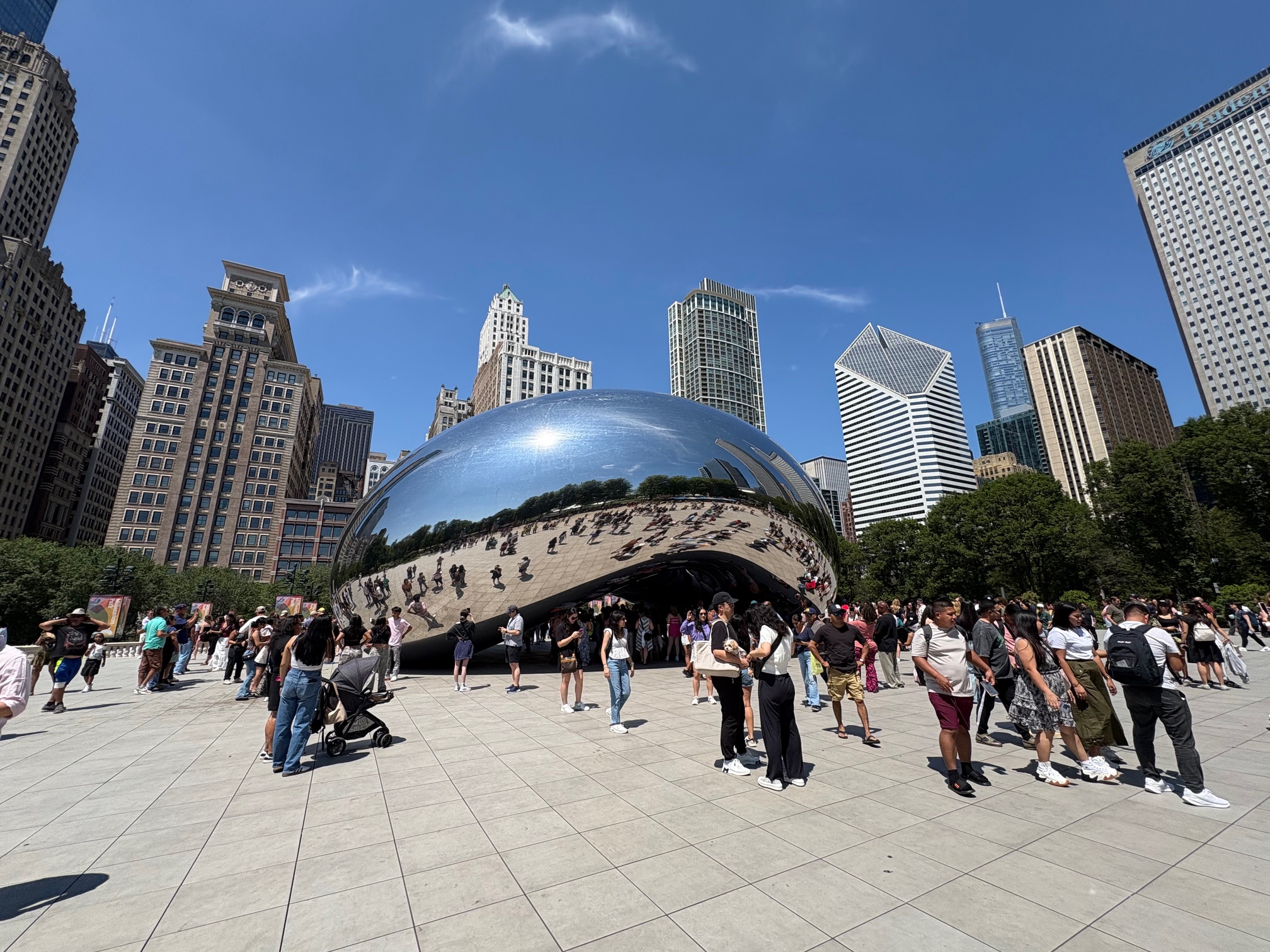 The sculpture’s official name is Cloud Gate, designed by British artist Anish Kapoor. It’s become one of Chicago’s most iconic landmarks since its unveiling in 2004. The mirrored surface reflects the city skyline and draws in tourists year-round. Walking underneath it creates a warped, surreal view of yourself and the city above.