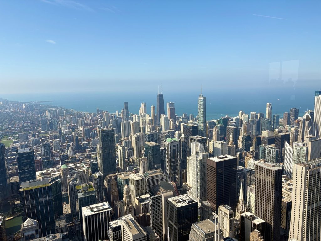 From 103 stories up, the view from the Sears Tower is nothing short of surreal. The city stretches endlessly in every direction lit up in gold and blue as the sun dipped below the horizon. Looking north I could spot the Hancock Tower standing tall near the lake, and just across the river, the reflective glass of Trump Tower with it’s tall spire.
