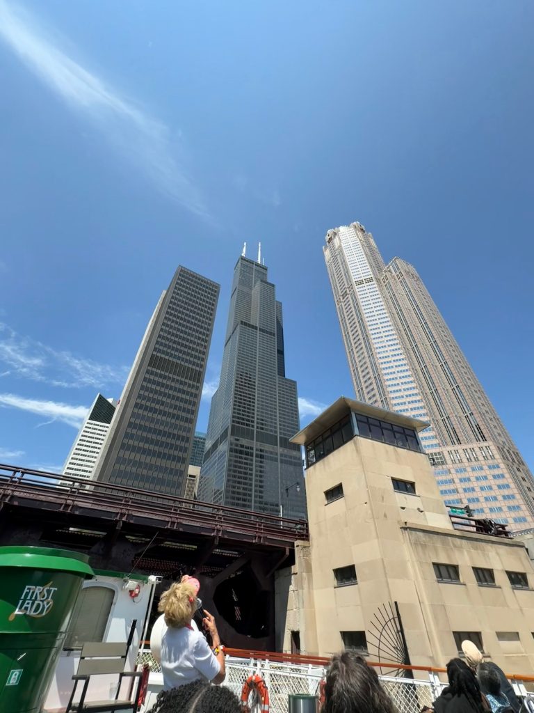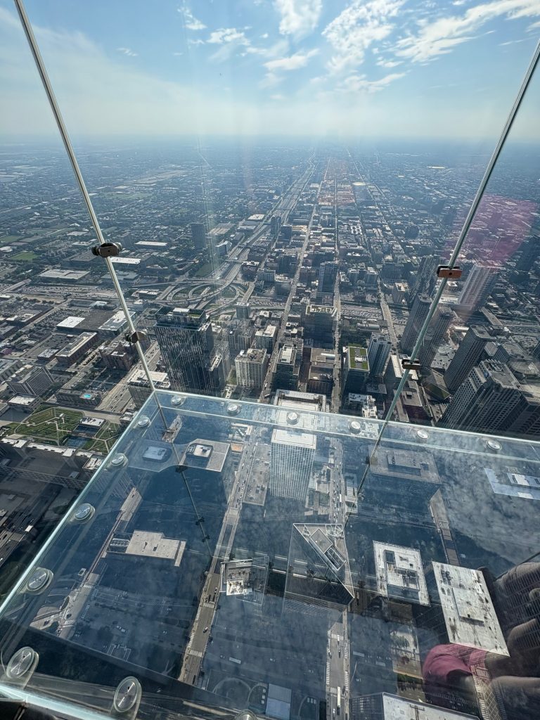 Completed in 1973, the Sears Tower (Willis Tower) was the tallest building in the world for nearly 25 years, standing at 1,451 feet. It was renamed Willis Tower in 2009, but honestly, no one from Chicago seems to care. They’ll always call it the Sears Tower. We took the elevator up to the Skydeck, where you can step out onto a glass ledge and look straight down 103 stories beneath your feet. It’s both terrifying and incredible.